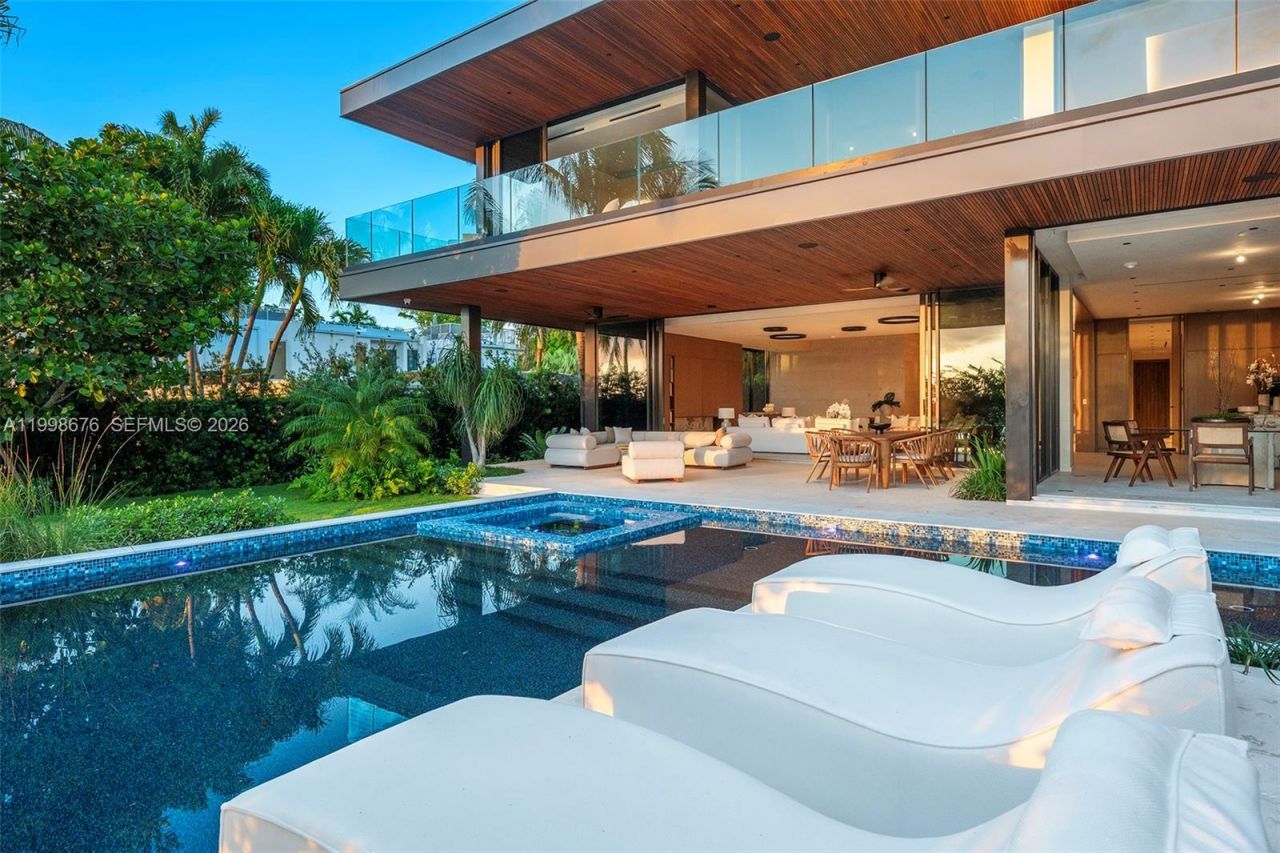Brand-new waterfront masterpiece in Bay Harbor Islands, offering 8,007 SF under A/C plus a 537 SF air-conditioned two-car garage on a 13,125 SF lot with 80 feet of water frontage. Set in a no-wake zone with dockage for a large vessel and just minutes from Haulover Inlet, it is a true boaters paradise.Designed by SDH Studio, with interiors by Alizée Brion and landscape design by CLAD, the home blends refined natural materials with sophisticated modern living. Elevated above FEMA requirements, it...Brand-new waterfront masterpiece in Bay Harbor Islands, offering 8,007 SF under A/C plus a 537 SF air-conditioned two-car garage on a 13,125 SF lot with 80 feet of water frontage. Set in a no-wake zone with dockage for a large vessel and just minutes from Haulover Inlet, it is a true boaters paradise.Designed by SDH Studio, with interiors by Alizée Brion and landscape design by CLAD, the home blends refined natural materials with sophisticated modern living. Elevated above FEMA requirements, it features soaring ceilings, dramatic entertaining spaces, custom walnut millwork, shell stone and white oak flooring, limestone accents, Lutron lighting and shade control, Sonos-integrated audio, and seamless indoor-outdoor living.The home includes a stunning main kitchen, fully equipped chefs kitchen, heated saltwater pool and spa, waterfall feature, outdoor kitchen, lush tropical landscaping, and a spectacular 2,250 SF rooftop terrace with pickleball rendering.The private upper level is devoted to a serene primary suite with sitting area, spa-like travertine bath, expansive closets, coffee station, and a dedicated wellness suite with sauna and cold plunge.A rare offering defined by warmth, scale, craftsmanship, and understated luxury.